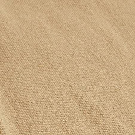 Sciarpa in maglia calata in misto lana nei toni naturali del nocciola con dettagli in contrasto bianco avorio sul fondo. Elegante ed essenziale è perfetta per uno stile classico e pulito.